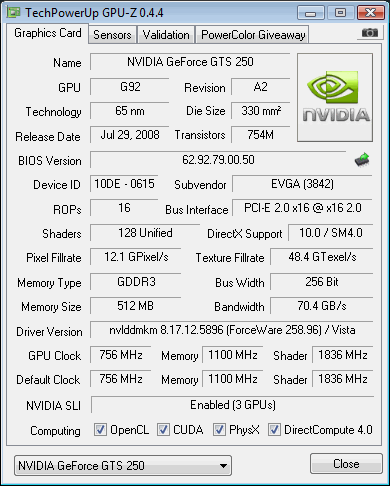 Geforce GTS 250: GPUZ Report :: Cpuz report :: Scores 367